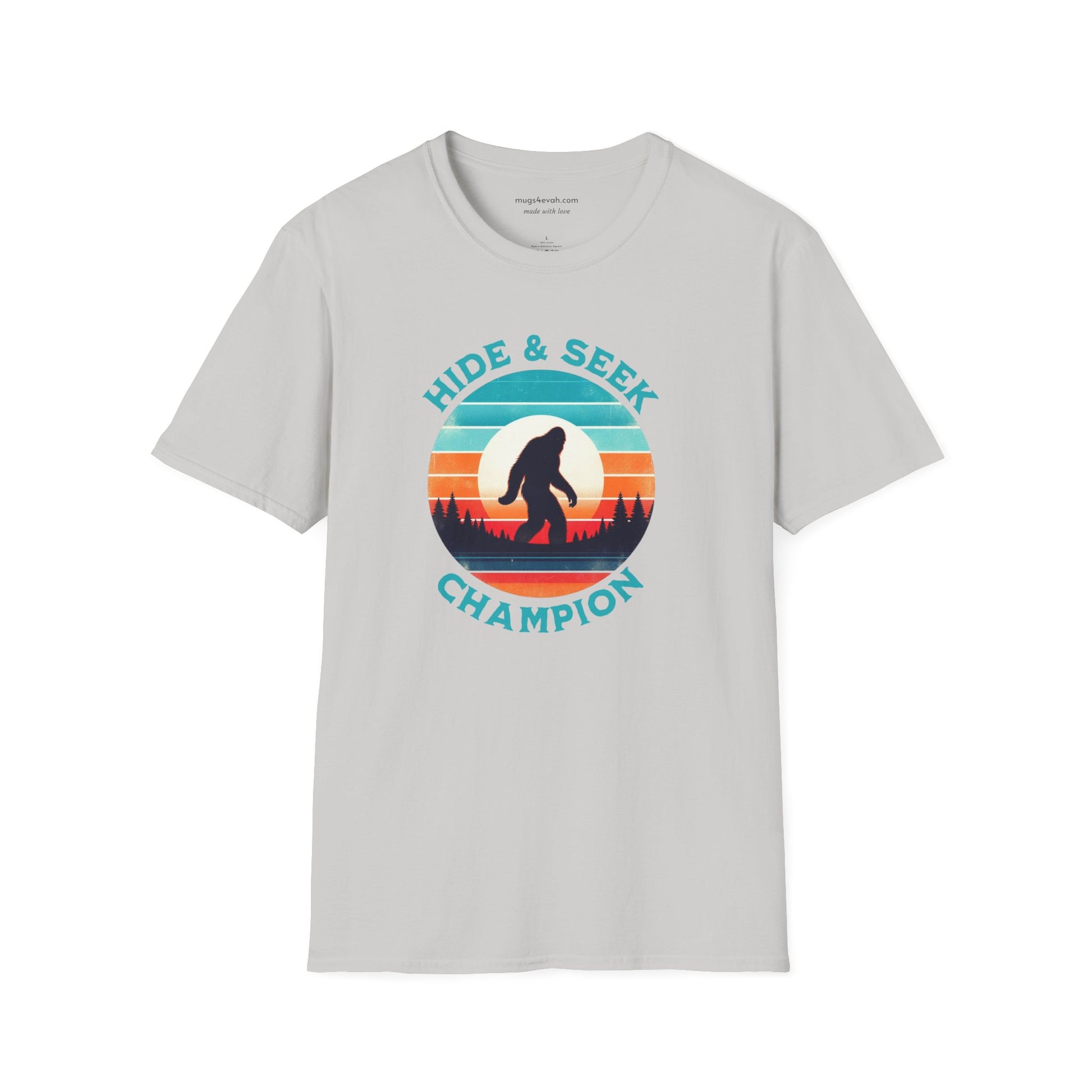 Bigfoot Yeti Sasquatch Sighting Hide and Seek Mountain T-shirt Gift Apparel Tee Unisex Softstyle T-Shirt