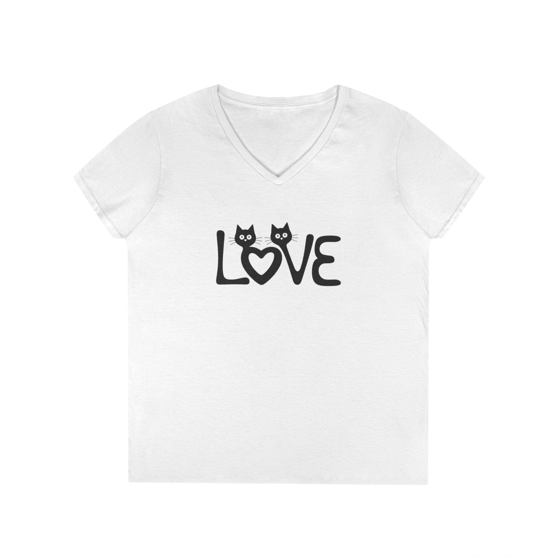 LOVE Cat Shirt, Cat Lover T-shirt, Cat V Neck Shirt, Cat Lover Gift, Gift for Her, Cat Mom Shirt Gift, Cute Cat Shirts, Cute Cat Tshirt