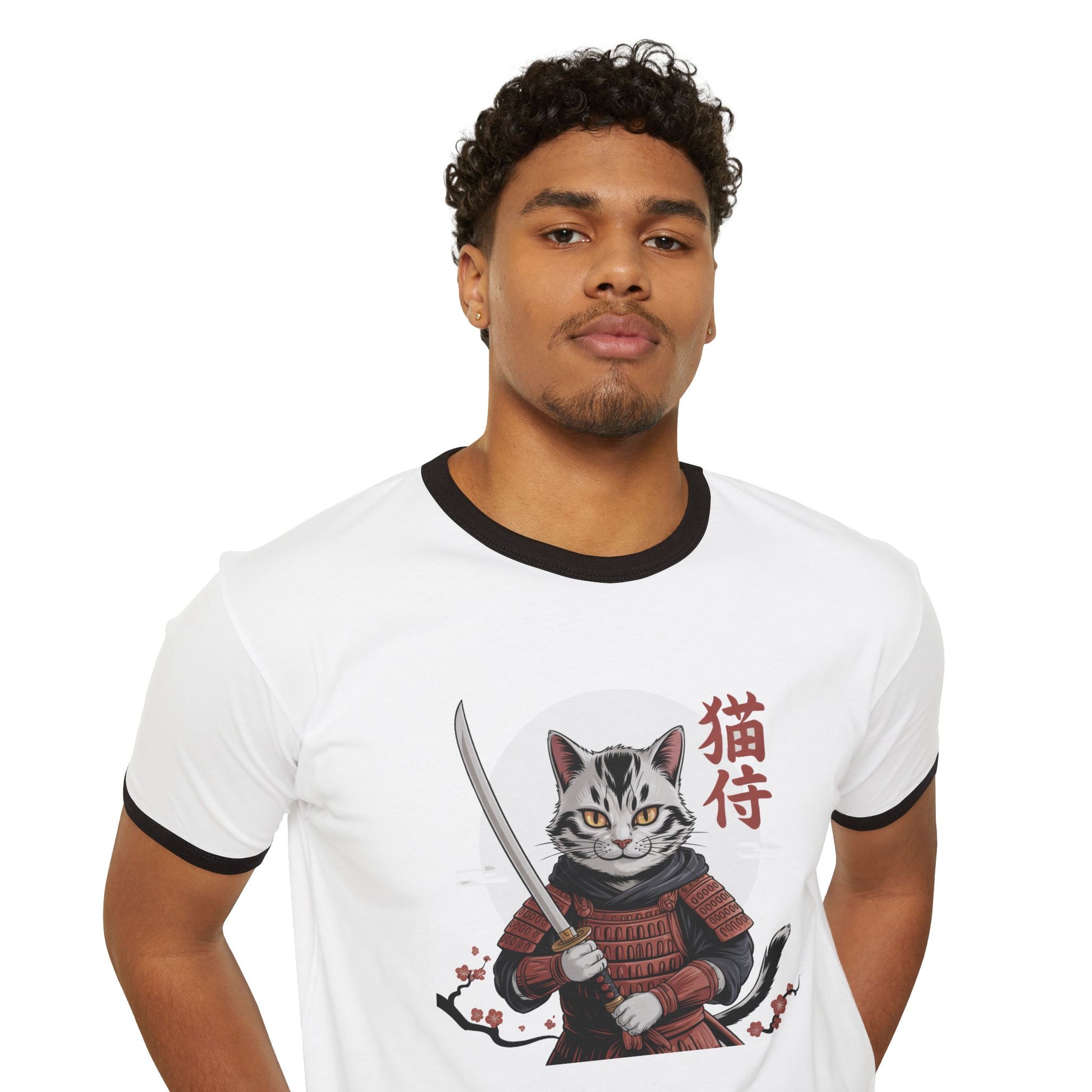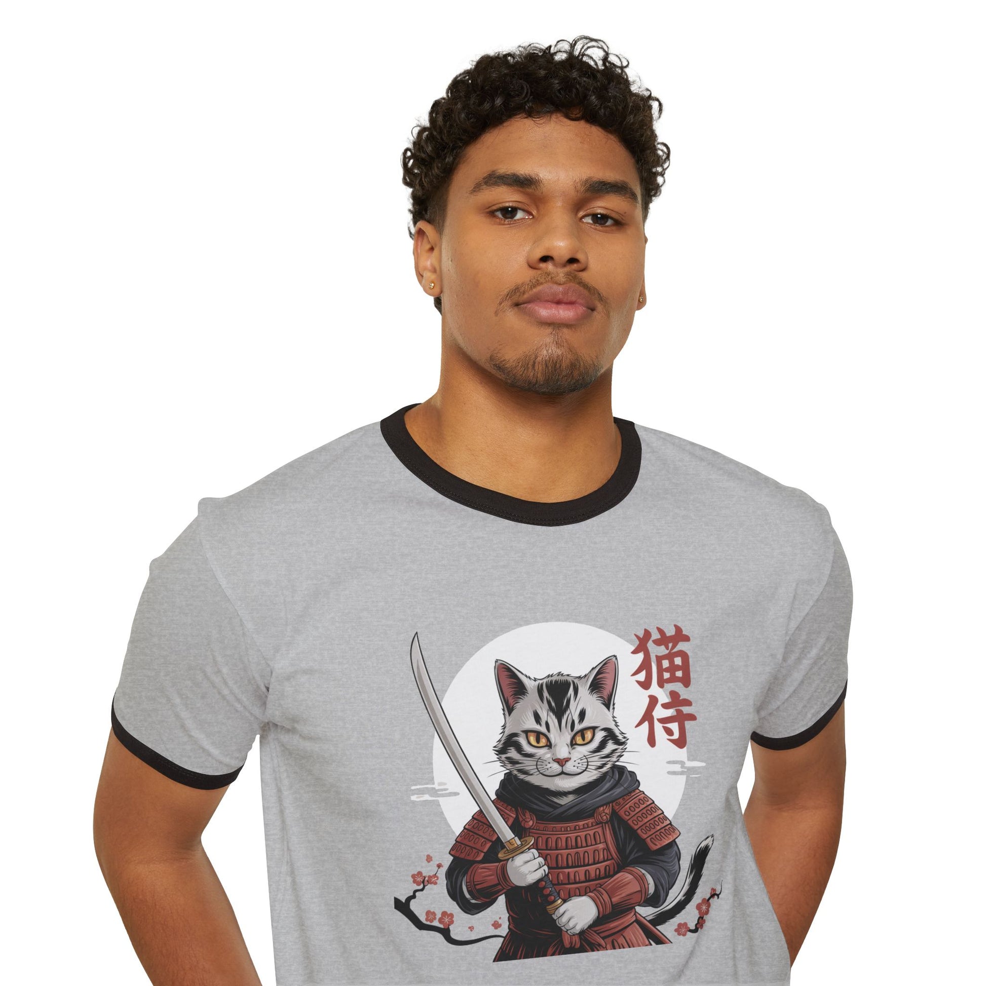 Samurai Cat Ringer T-Shirt for Cat Lovers